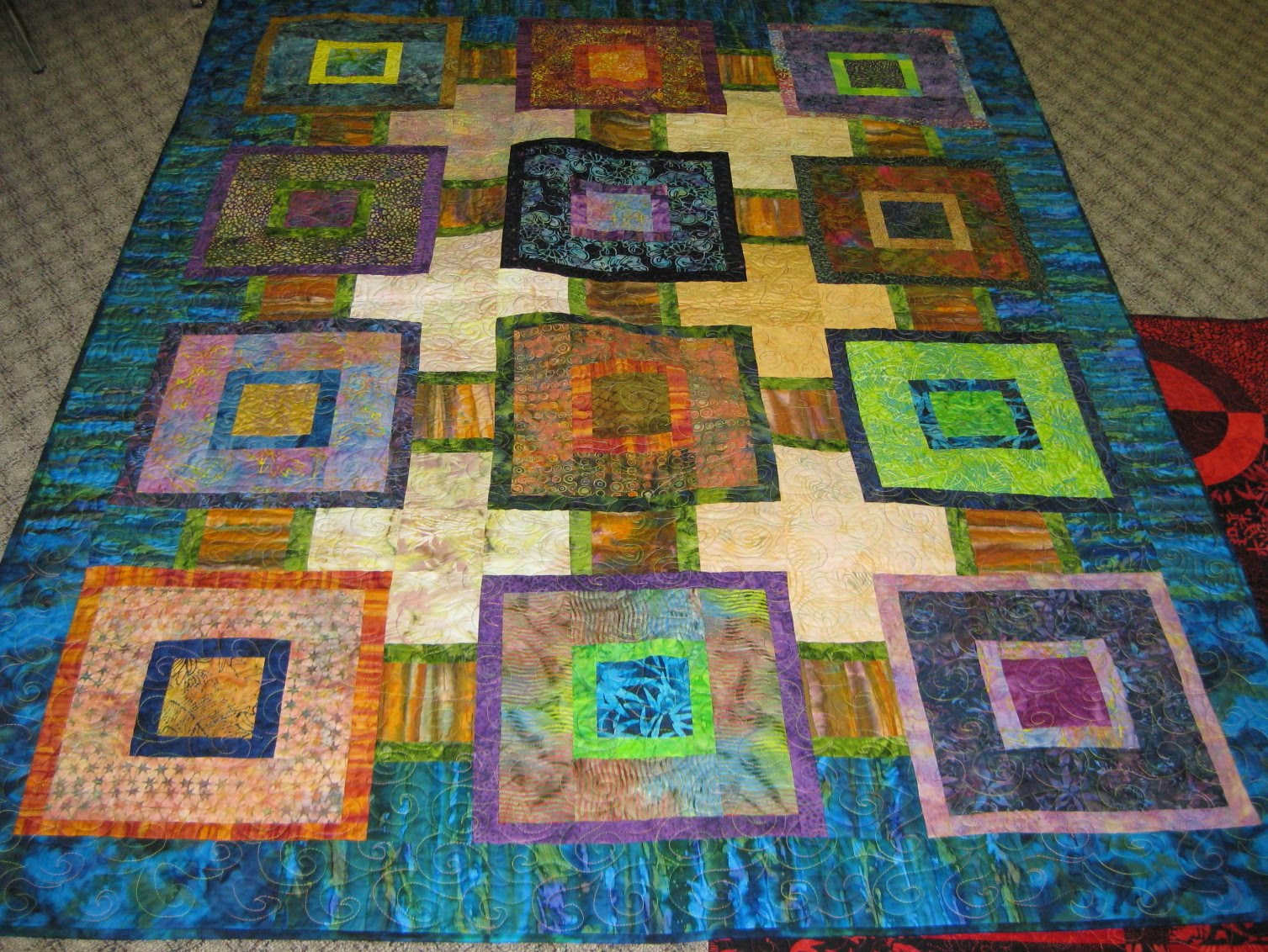 I really like the first quilt. The colors and fabrics used give it an organic look. A very soothing design.